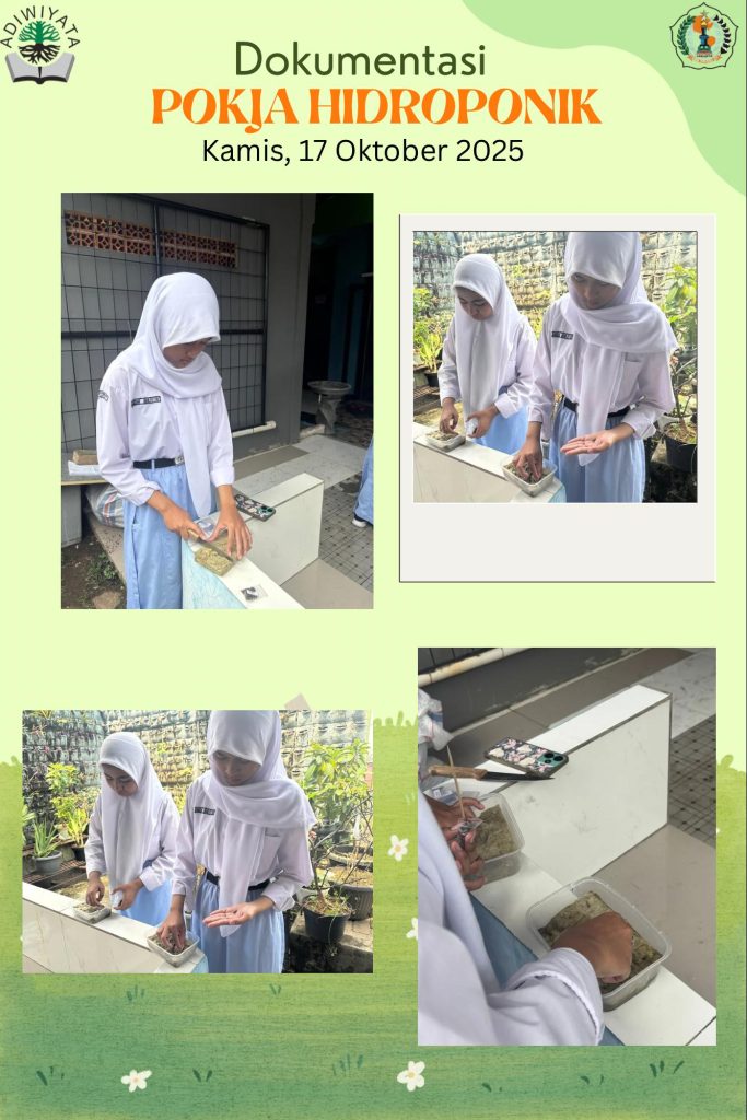 Pada hari Kamis, 16 Oktober 2025, kader Pokja Hidroponik melaksanakan kegiatan penyemaian benih kangkung dan pakcoy di area kebun hidroponik. Kegiatan ini bertujuan untuk melatih keterampilan anggota dalam budidaya tanaman dengan sistem hidroponik serta mendukung upaya penghijauan dan kemandirian pangan.